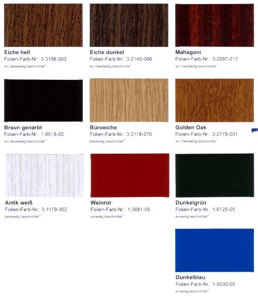unten sehen Sie die für Kunstofffenster verfügaberen Dekore |