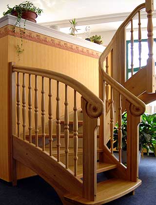 verbindet. Wir beraten Sie zu Ihrer individuellen Treppenform und zu den Holzarten (Kiefer, Birke, Buche, Eiche usw.). |